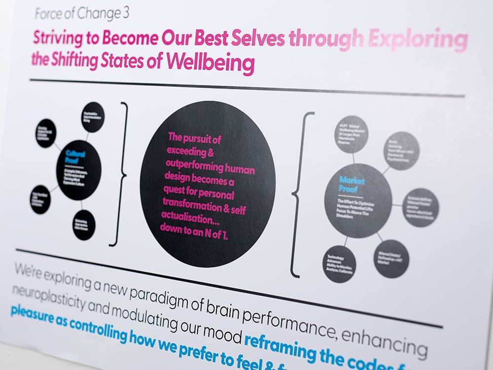 ChallengeOur big challenge in a big business was to get them to think about tomorrow. But they didn't know how to slow down for long enough to make time to do it. They needed a spark of inspiration, innovation and strategy to identify future growth opportunities and ensure their brands maintained relevance with future consumers. We had to make the future tangible so they could act on it today.
